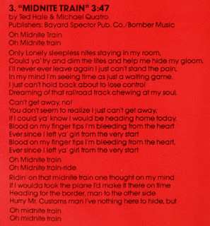 Called "The Bach of Rock" by The St. Louis Globe, "A modern-day Beethoven" by The New York Times, and "Chopin with guts" by The Pittsburgh Press, sexy rocker and keyboard virtuoso Michael Quatro can trace his influences back to some of the very best musicians in history. Born of Italian and Hungarian descent, Michael is an avid sportsman (hockey, football, go-kart racing, badminton), he's worked with a host of famous musicians (George Clinton, Bob Seger, Alice Cooper, Iggy Pop), he's Suzi Quatro's brother, and he's an uncle to Sherilyn Fenn! Quatro's "Bottom Line" LP was released in 1981, though I don't actually have the entire record, only a 2-track promo 12" single packed inside the LP sleeve. I'm guessing "Bottom Line" probably refers to the posterior tan lines exhibited by the lovely young lady on the cover, as seen in the photos below—the ones where Michael's got a roll of quarters and a cue ball in his pants). You can read more about Michael Quatro here and here, and the pictures and lyrics from the album are included below.